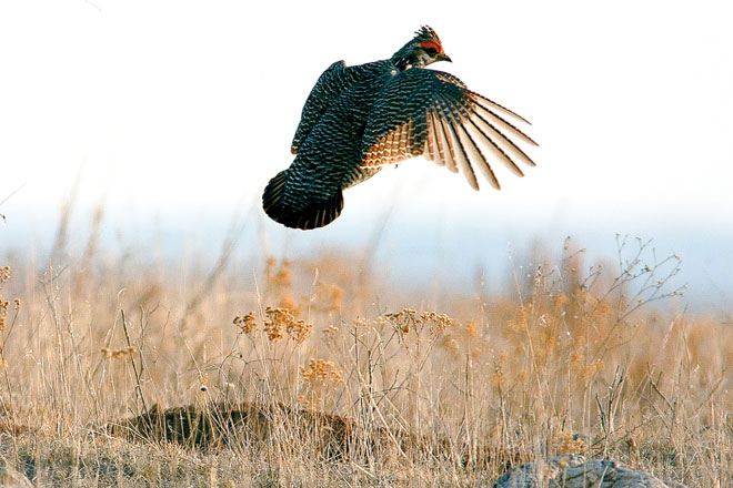 The performance begins at first light on a windswept expanse of northwestern Oklahoma prairie. First one, then two, then a half-dozen birds glide into the small clearing, each staking out its own small piece of territory. Then - as if on cue - they begin a ritual as old as the prairie itself.