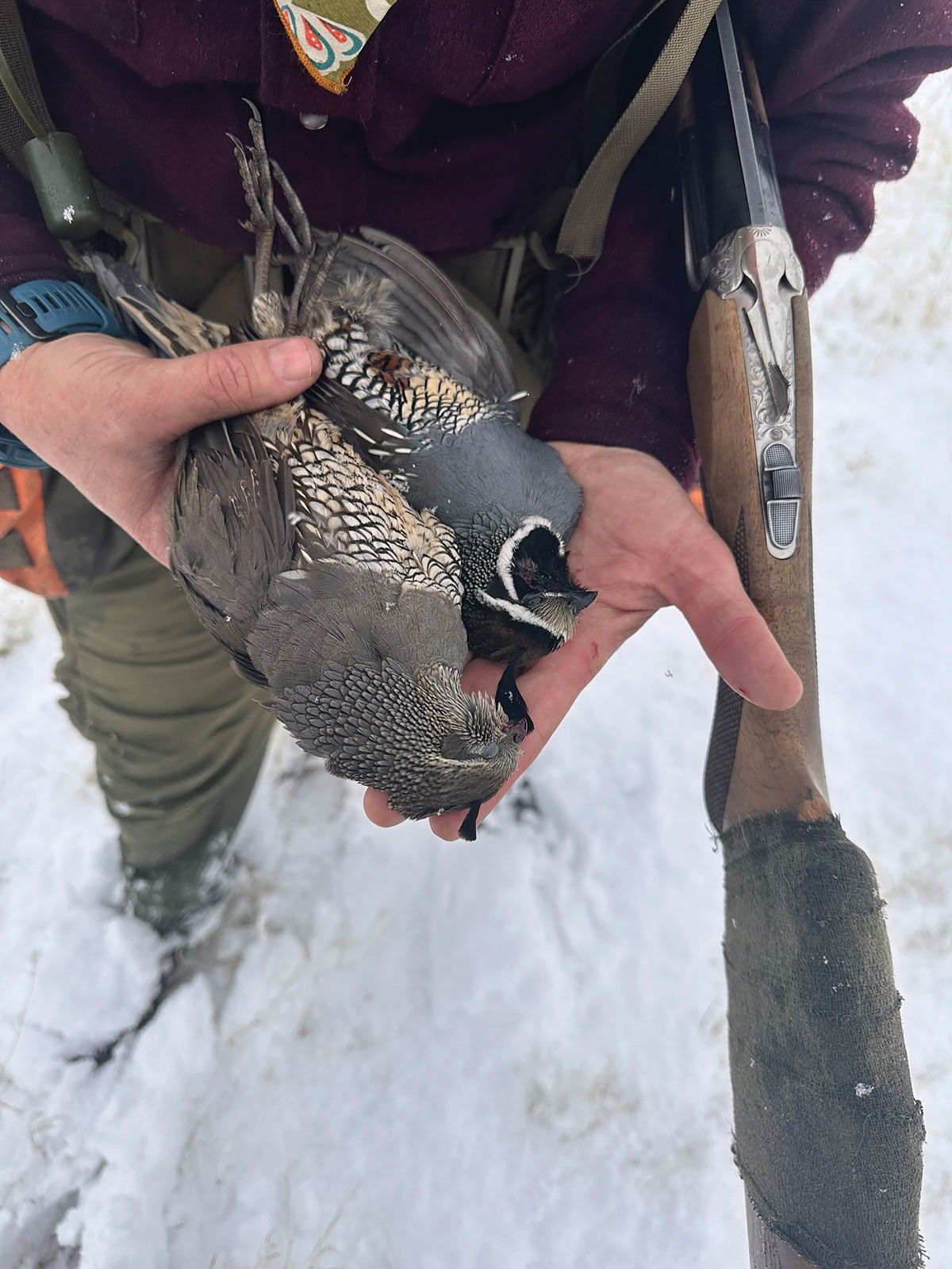 “The single season quail slam. All six species of quail in a single season. You got your mountain quail yesterday, and you have shot plenty of valleys, including today.”