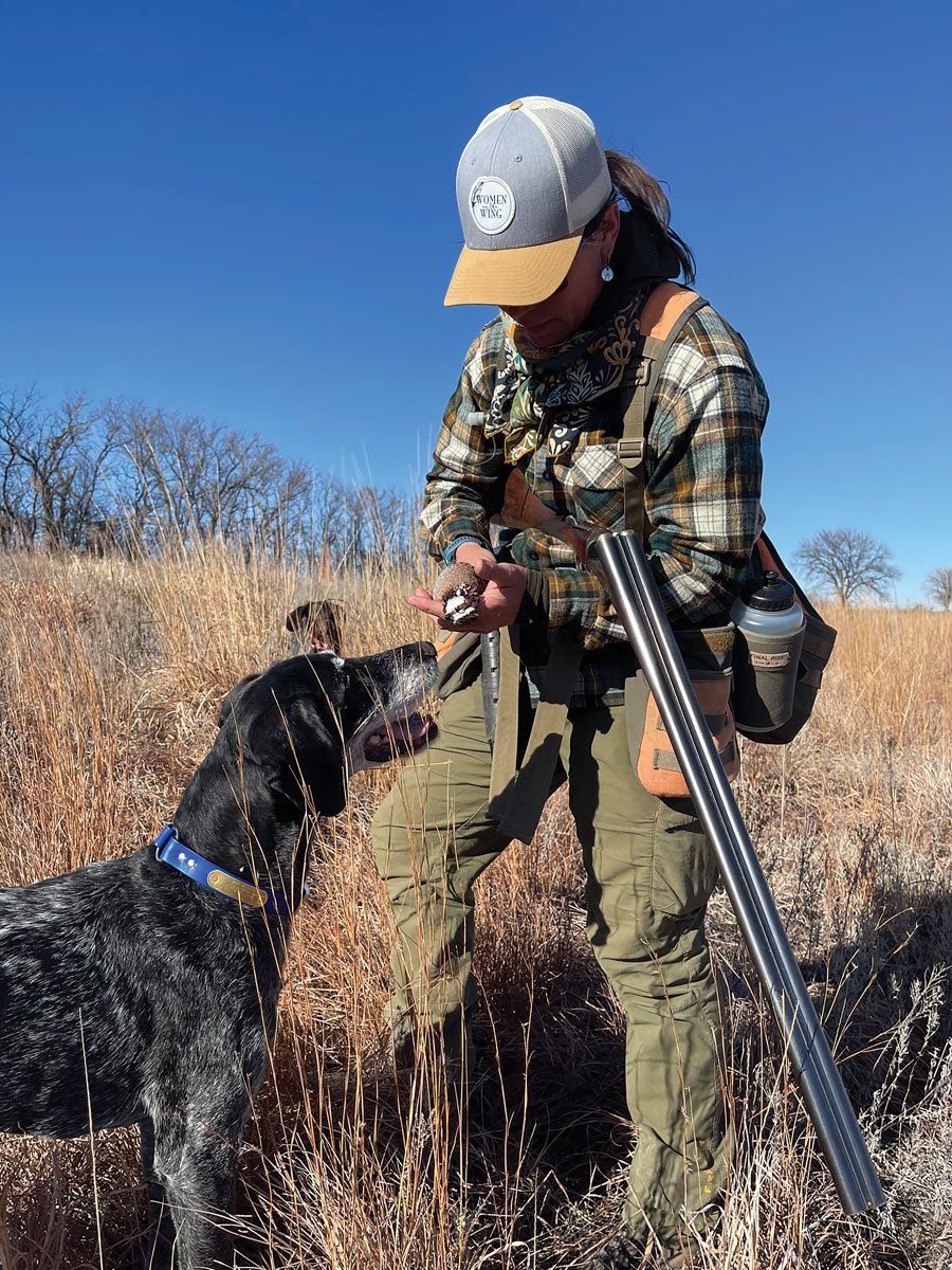 Then silence, Gravy suddenly a statue, neck bent back over his shoulder. Taking two steps, a lone bird broke from cover. As he passed 10 feet to my right, I saw the telltale spike of feather on his head and the deep ruddy tone of his throat. Following, I squeezed off a round when we met on the same linear plane.